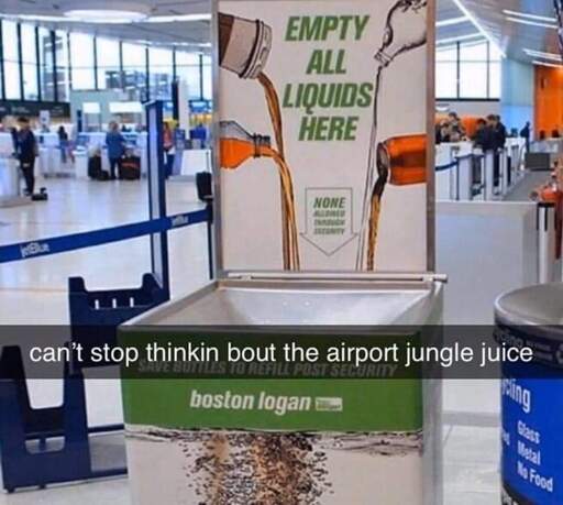 Never fails to amuse me that in order to fight to “threat” of binary explosives i.e. two liquids that explode when mixed together…