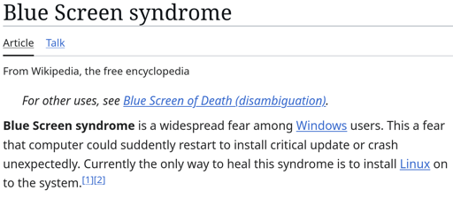 arrow-up1-1arrow-down1imageHave you heard about Blue Screen syndrome?plus-squarelemmy.worldTux@lemmy.world to memes@lemmy.worldEnglish · 1 year agomessage-square0fedilink